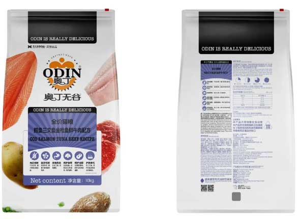 奧丁無谷系列本周新上單品—鱈魚三文魚金槍魚鮮牛肉配方全價貓糧,本產品共分為1.5kg/10kg兩種規(guī)格,粗蛋白質≥38%,富含多種肉類,不含谷物,兼?zhèn)浯倥琶颉⒏纳萍S臭、呵護腸胃、護膚美毛、呵護泌尿等特點。