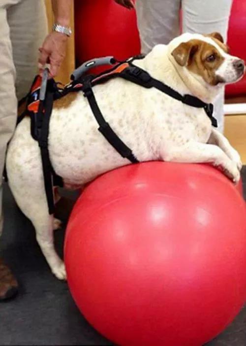 狗狗救助組織的獸醫和訓練員們在救助了珍珠后,開始幫助它減肥,他們為它制定了嚴格的飲食計劃,并且運用了水下跑步機等鍛煉器材。