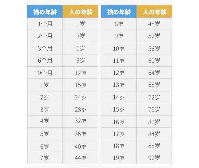 貓咪和人類年齡的對照表